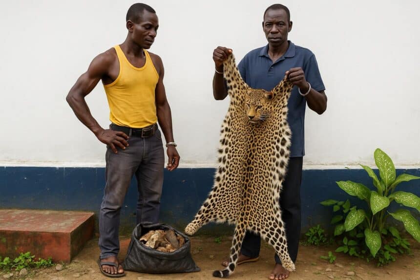 In each raid, investigators seized trophies before they crossed provincial borders, a tactic that minimizes evidentiary gaps; confiscated items ranged from rolled leopard skins to 28 kilograms of giant pangolin scales and two paired elephant tusks.